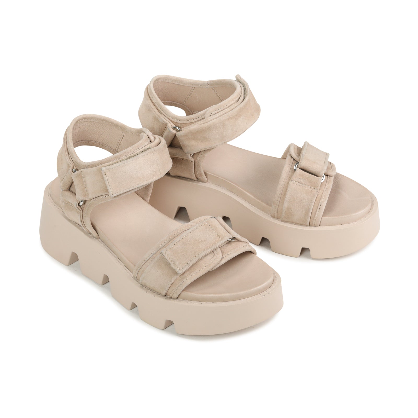 Elevate your style game with our KAIDA sandals! Crafted from sumptuous kid suede and boasting a leather-wrapped footbed, these sandals offer both chic elegance and a chunky platform wedge. You can easily customize the fit with velcro straps on the ankle and upper foot, making them the ultimate combination of effortless style and comfortable wear.