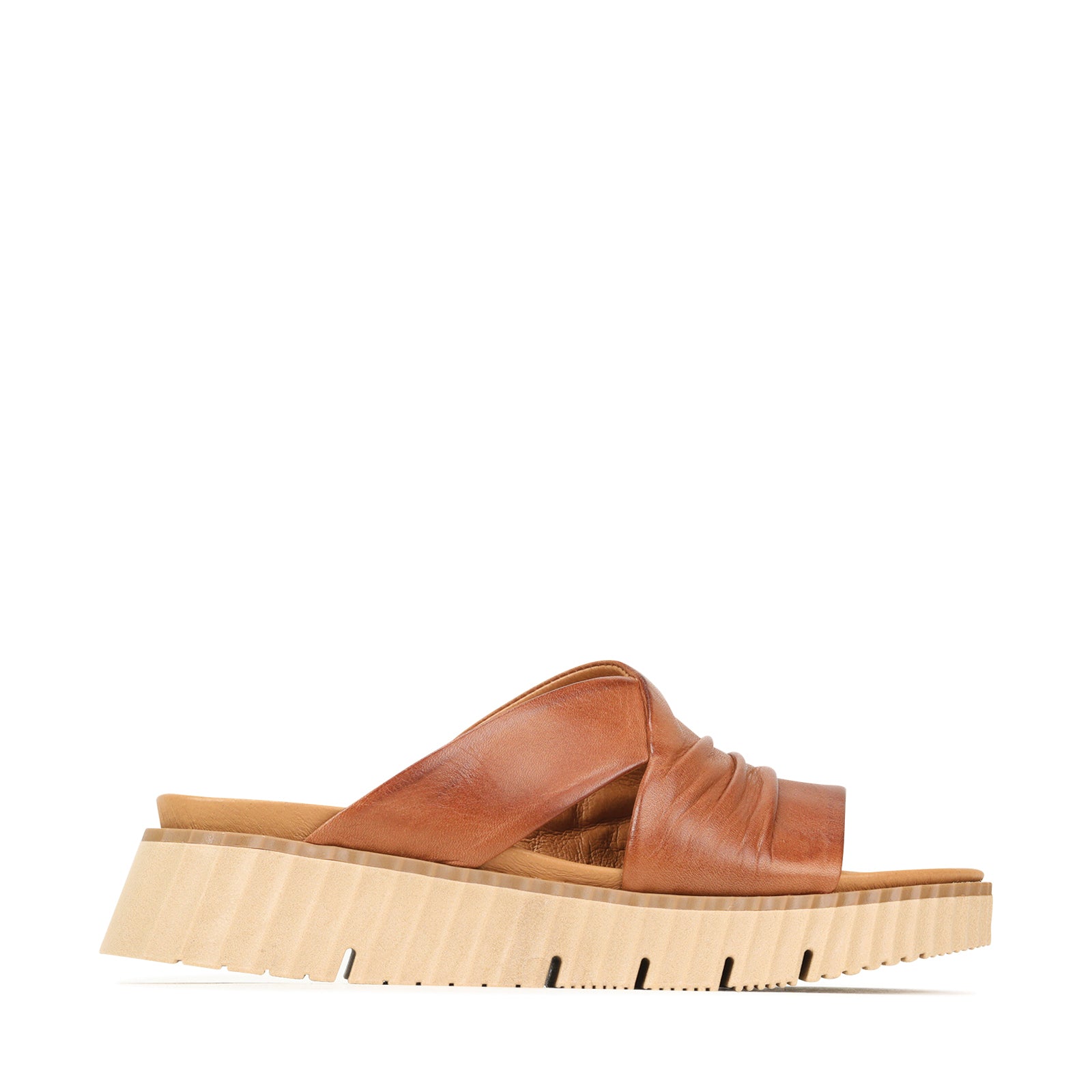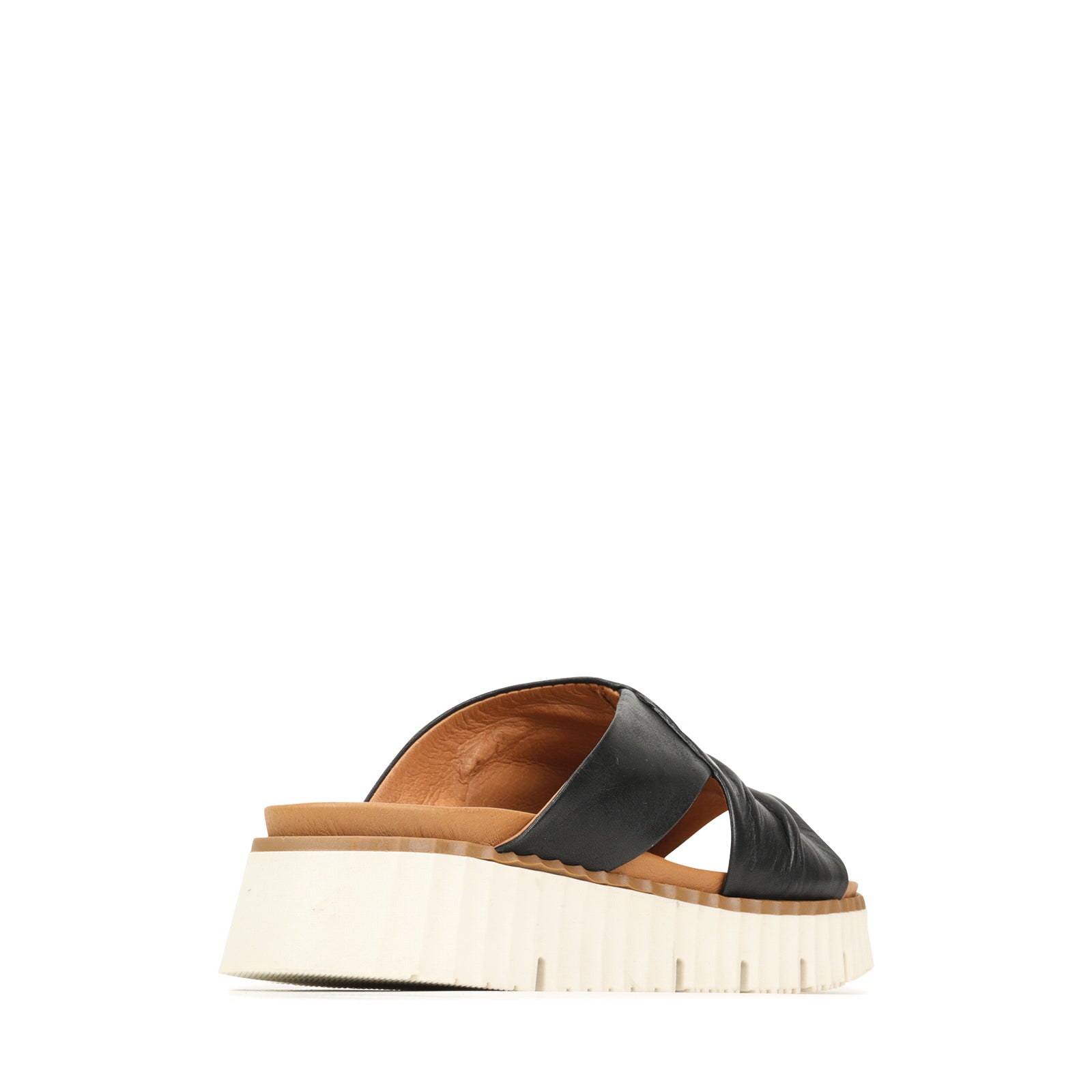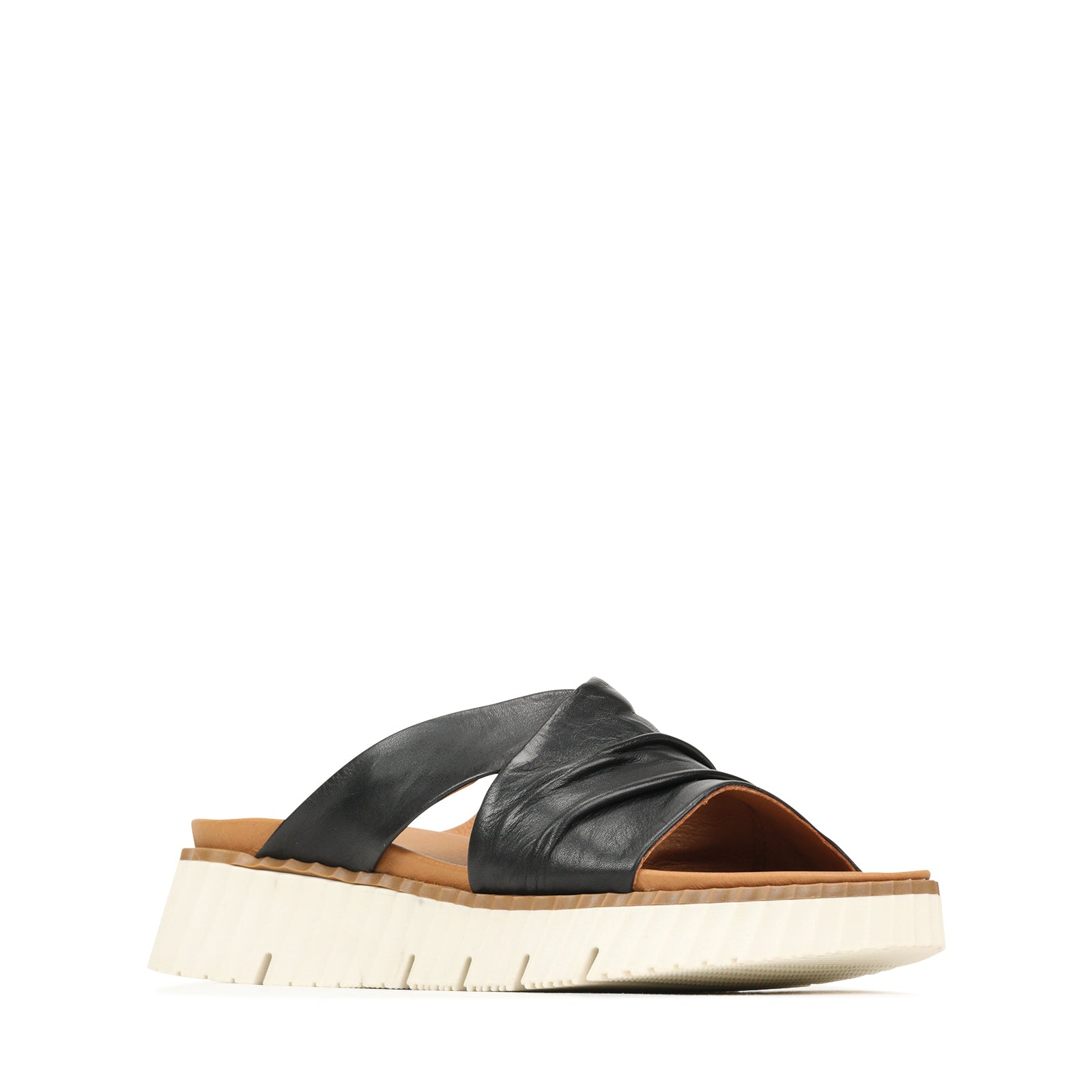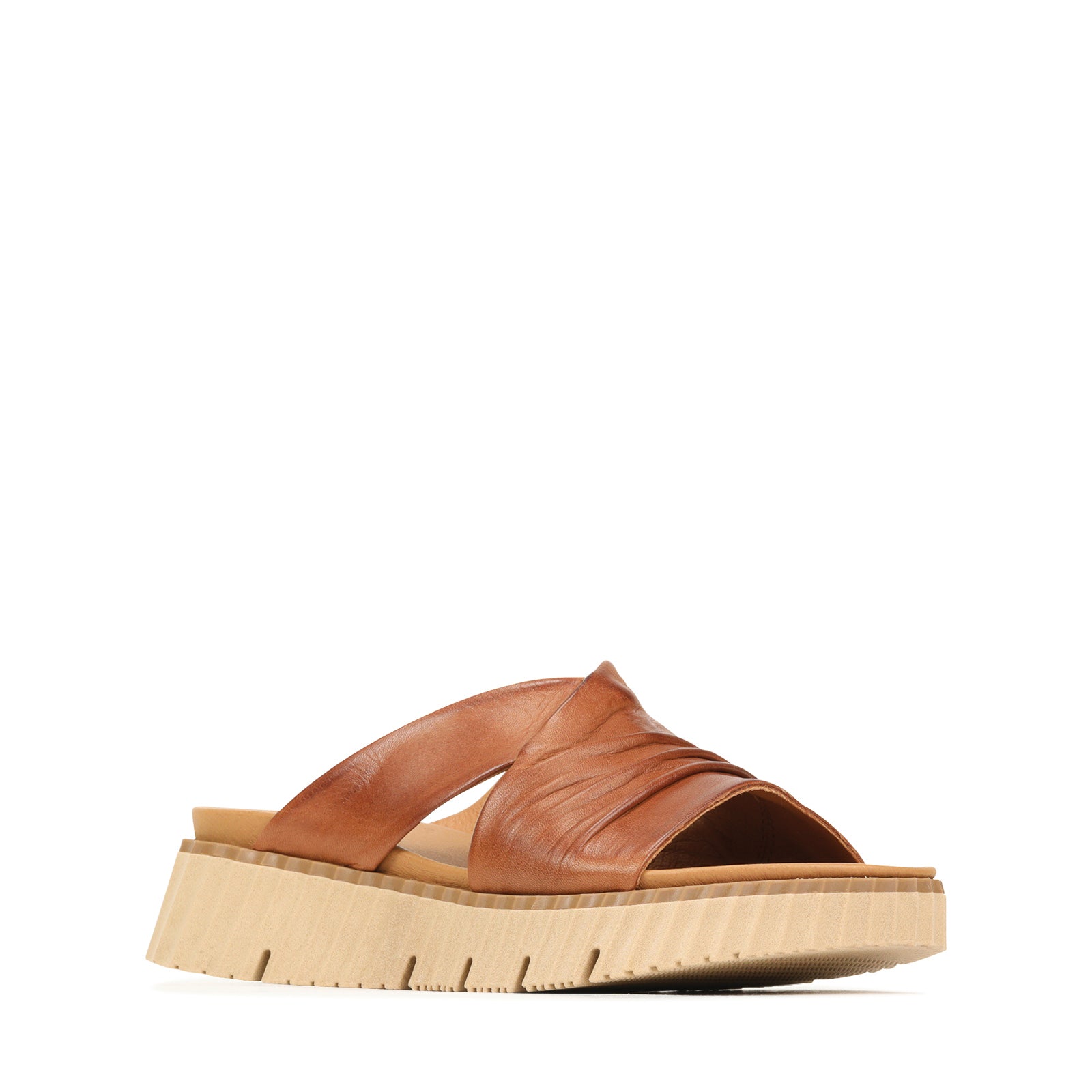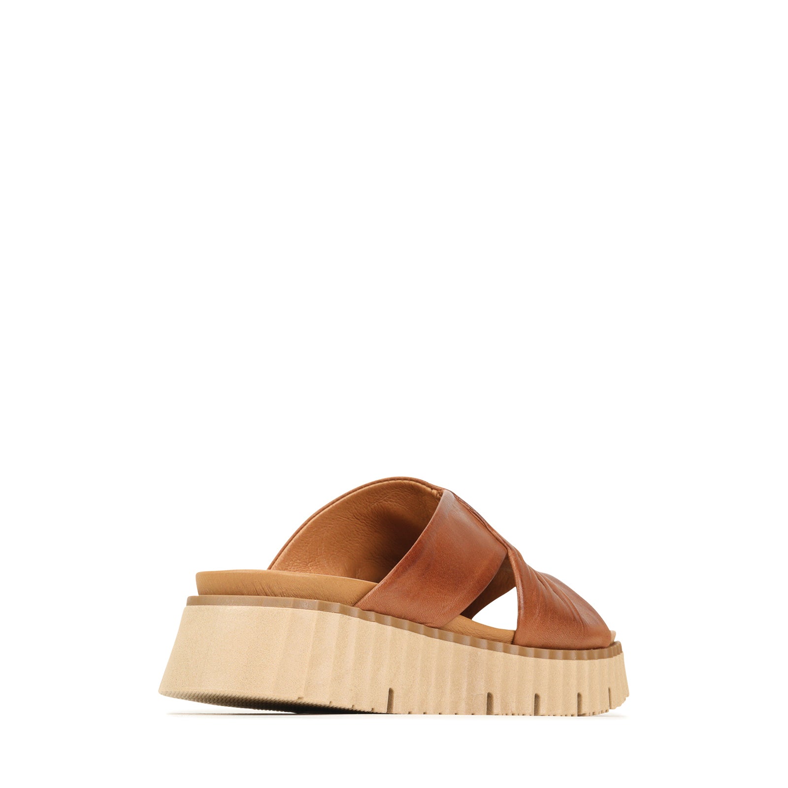 Introducing PELA - your new must-have for any outfit! These premium sandals made from Siviglia Soft leather feature padded cross-over straps for maximum comfort. The slip-on design offers convenience, while the ridged platform sole adds height and cushioning.