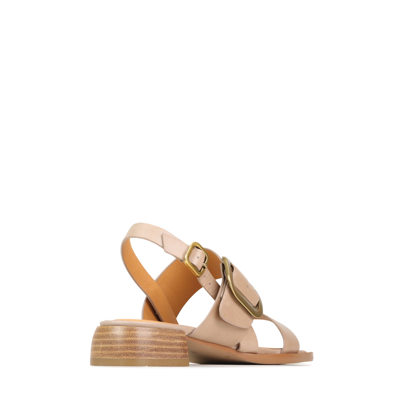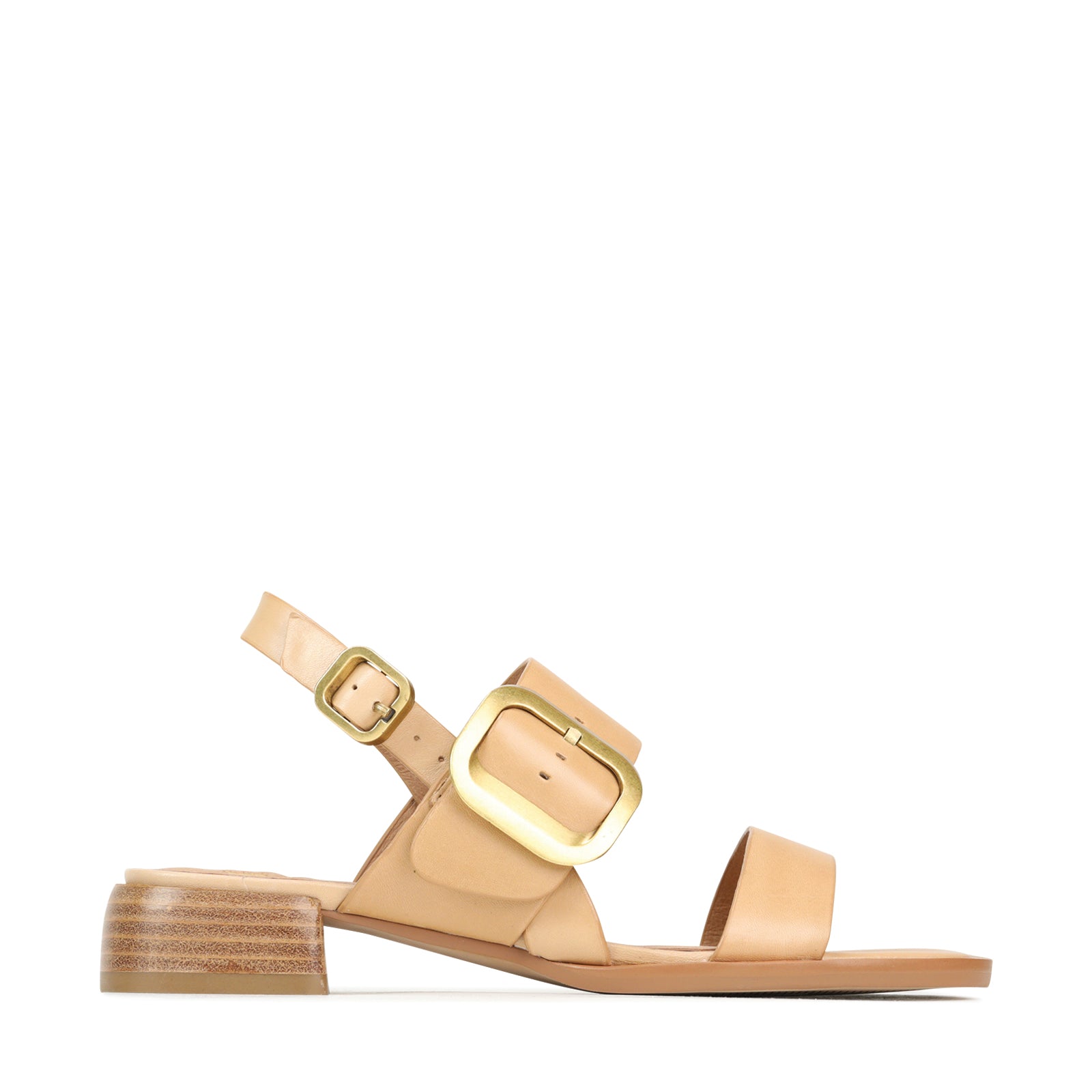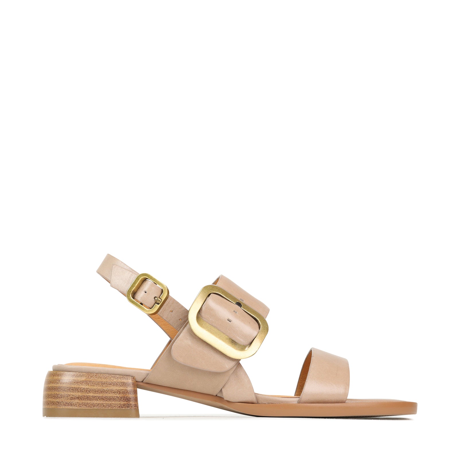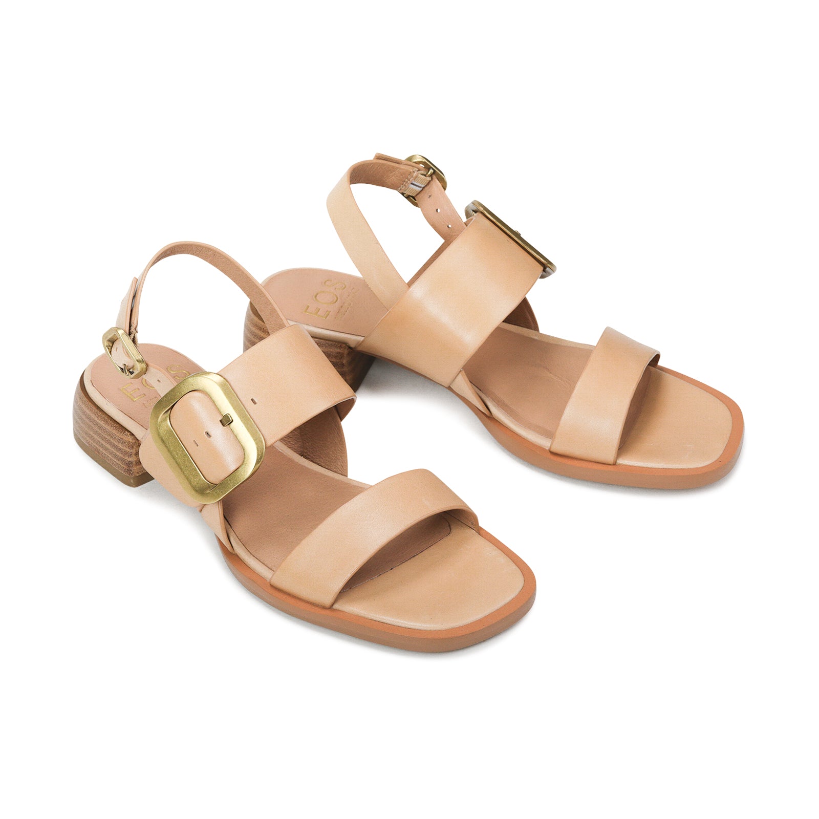 Feel the captivating contemporary style of the TEGEAN slingback sandals from EOS. Gracefully balanced on a 35mm block heel, this classic design is crafted from luxurious Cashmere or Blanco leather, with a large antique brass finished 3D pin buckle detail. Subtly sophisticated and effortlessly chic, these sandals add a refined touch to any ensemble.