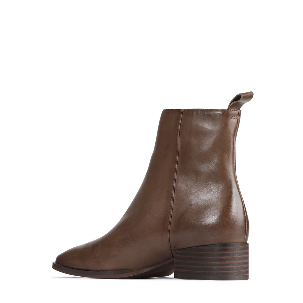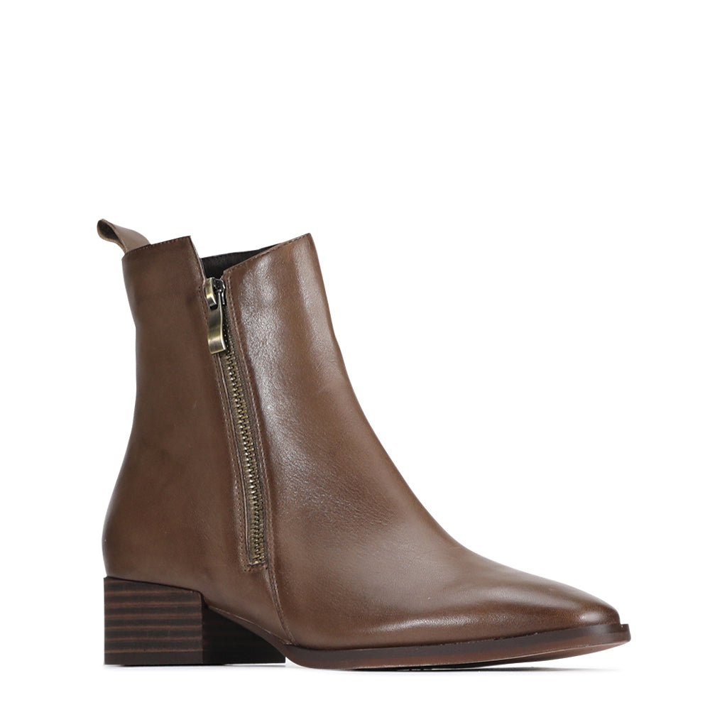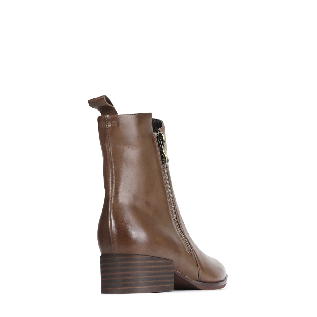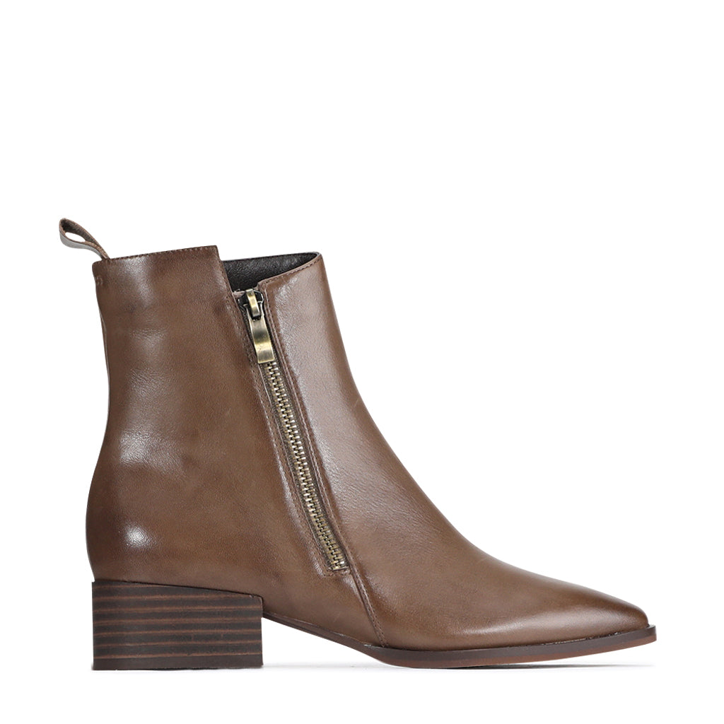 Kendra is your kindred spirit in boot form; sophisticated and stylish with a playful air of femininity. These low ankle boots feature an edgy angled collar and elongated toe, along with a simple side zip and loop toggle to the rear. Finished in fine cashmere leather, you’ll find the sleek silhouette connects effortlessly with every other item in your wardrobe.