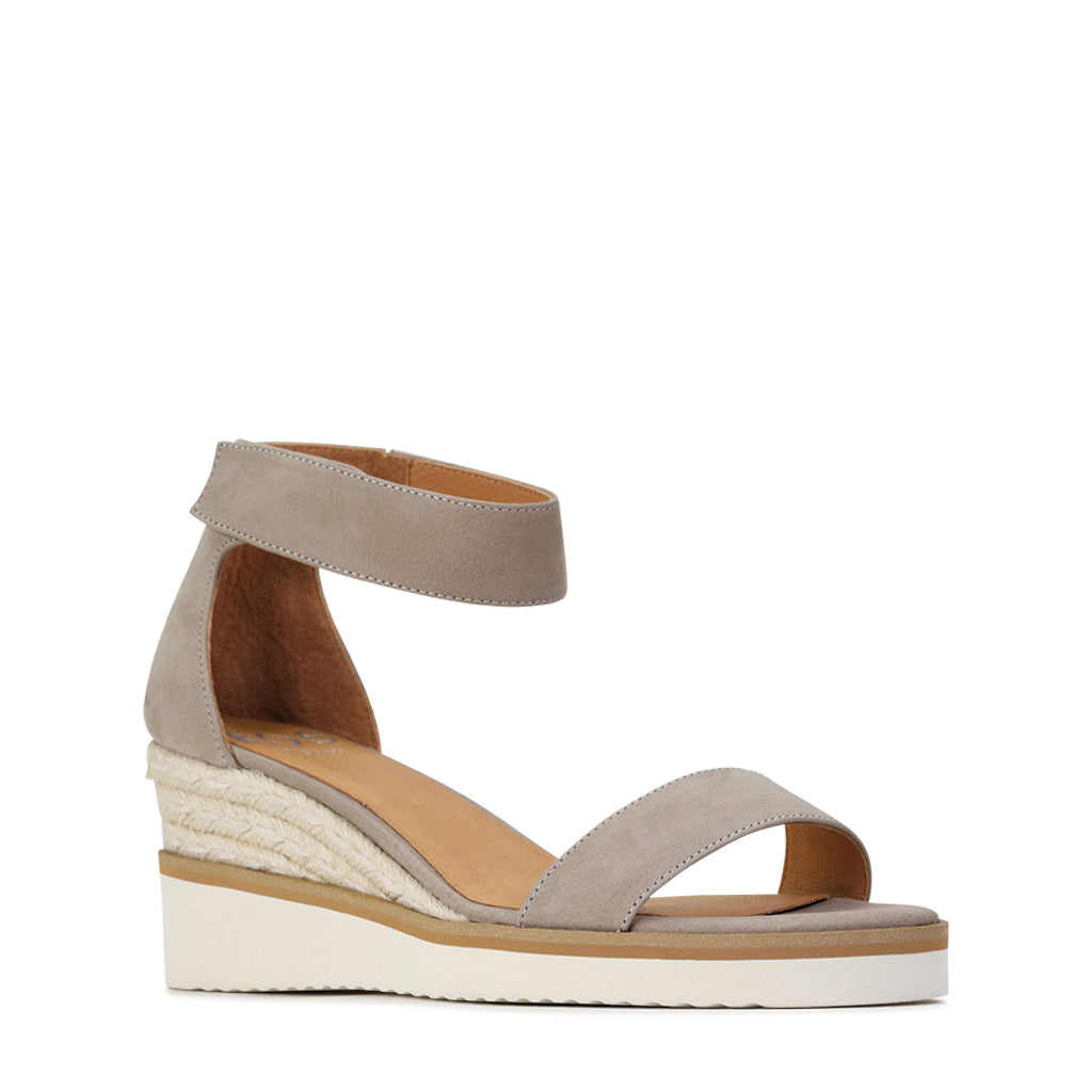 This lightweight Espadrille style wedge is easy and breezy and perfect for those hot summer days. This back in sandal cradles your foot and keeps it strapped in for support and comfort, and you will love the high-quality aniline full-grain calf leather and cashmere materials.