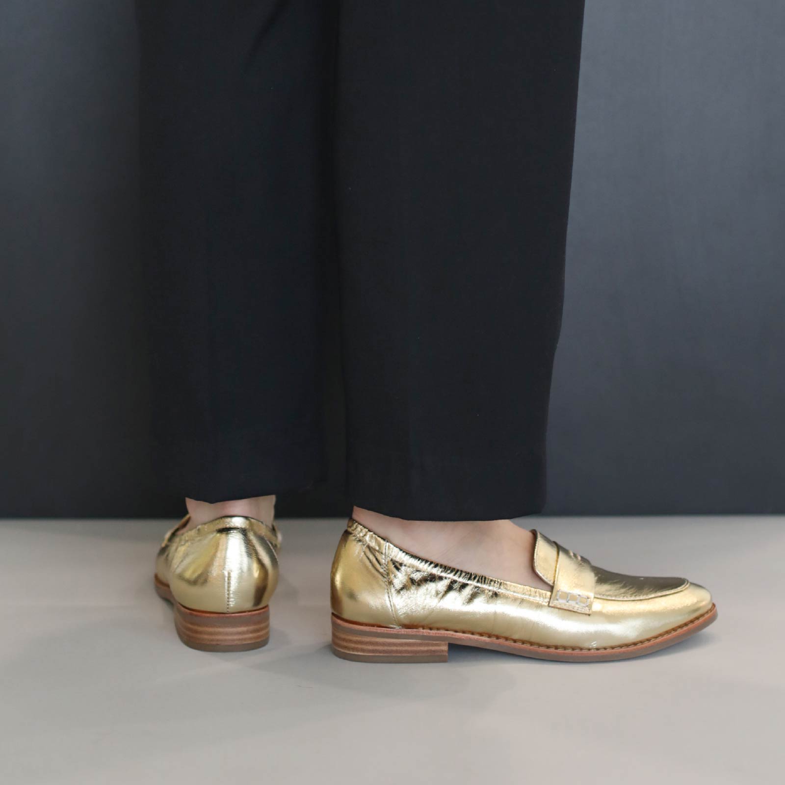 Step into style and comfort with our CHILE loafers. Made with a leather stacked heel and a metallic leather finish, these flat loafers are the perfect addition to any outfit. Say goodbye to sore feet and hello to effortless sophistication.