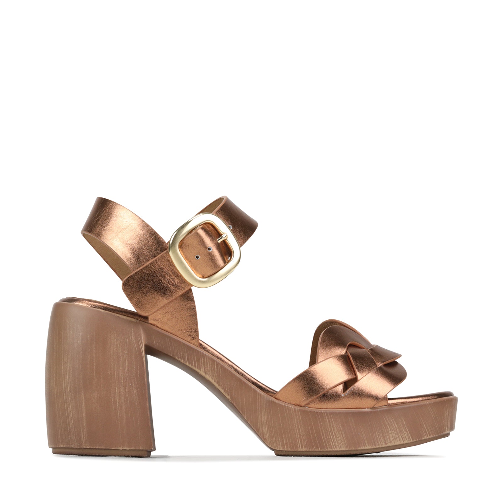 Introducing SPIRITED Block Heel Sandals- where style meets comfort! Made from Cashmere or Crinkle Metallic leather, these unique heels boast a woven strap design detail. Walk all day in comfort and elevate your look with these sleek sandals.