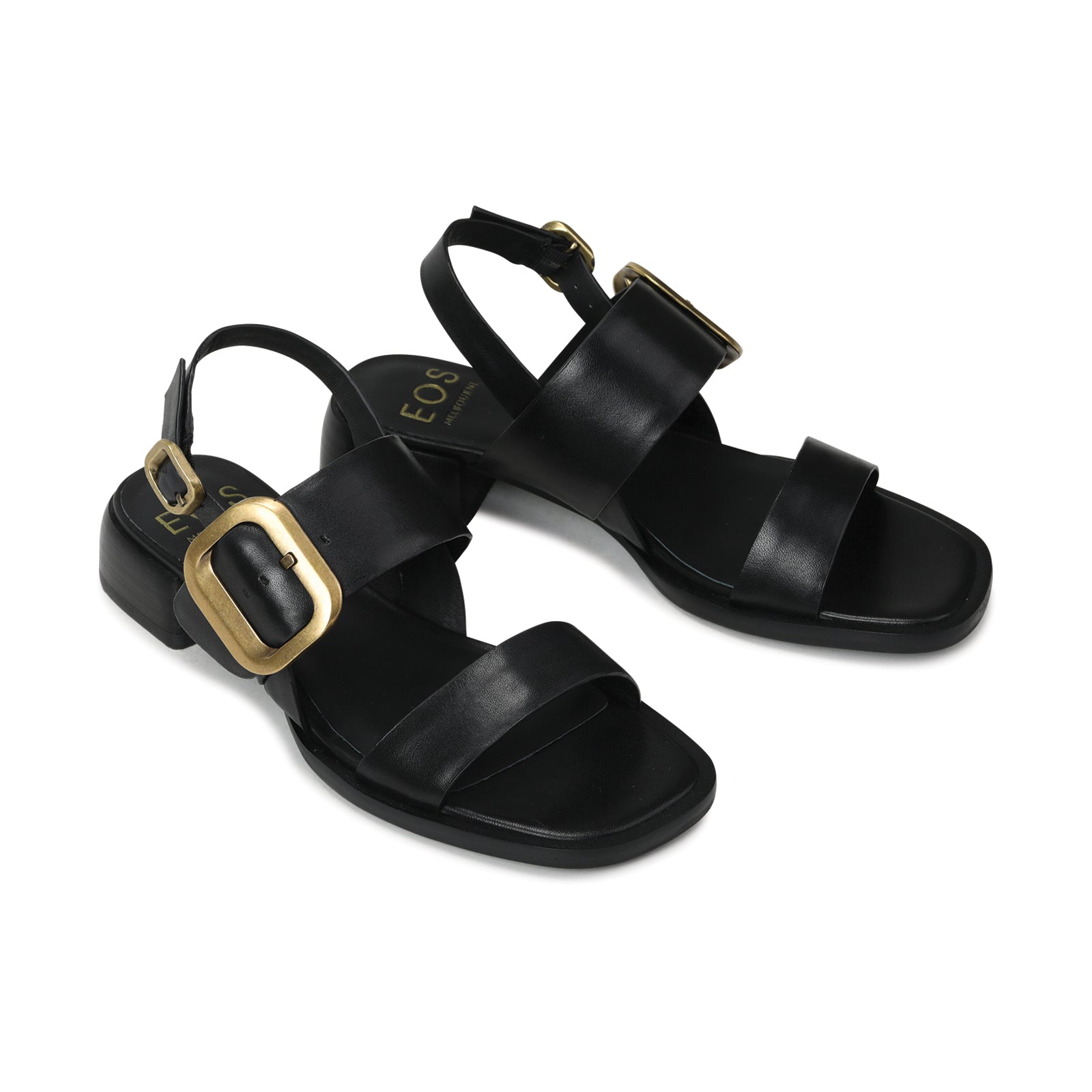 Feel the captivating contemporary style of the TEGEAN slingback sandals from EOS. Gracefully balanced on a 35mm block heel, this classic design is crafted from luxurious Cashmere or Blanco leather, with a large antique brass finished 3D pin buckle detail. Subtly sophisticated and effortlessly chic, these sandals add a refined touch to any ensemble.
