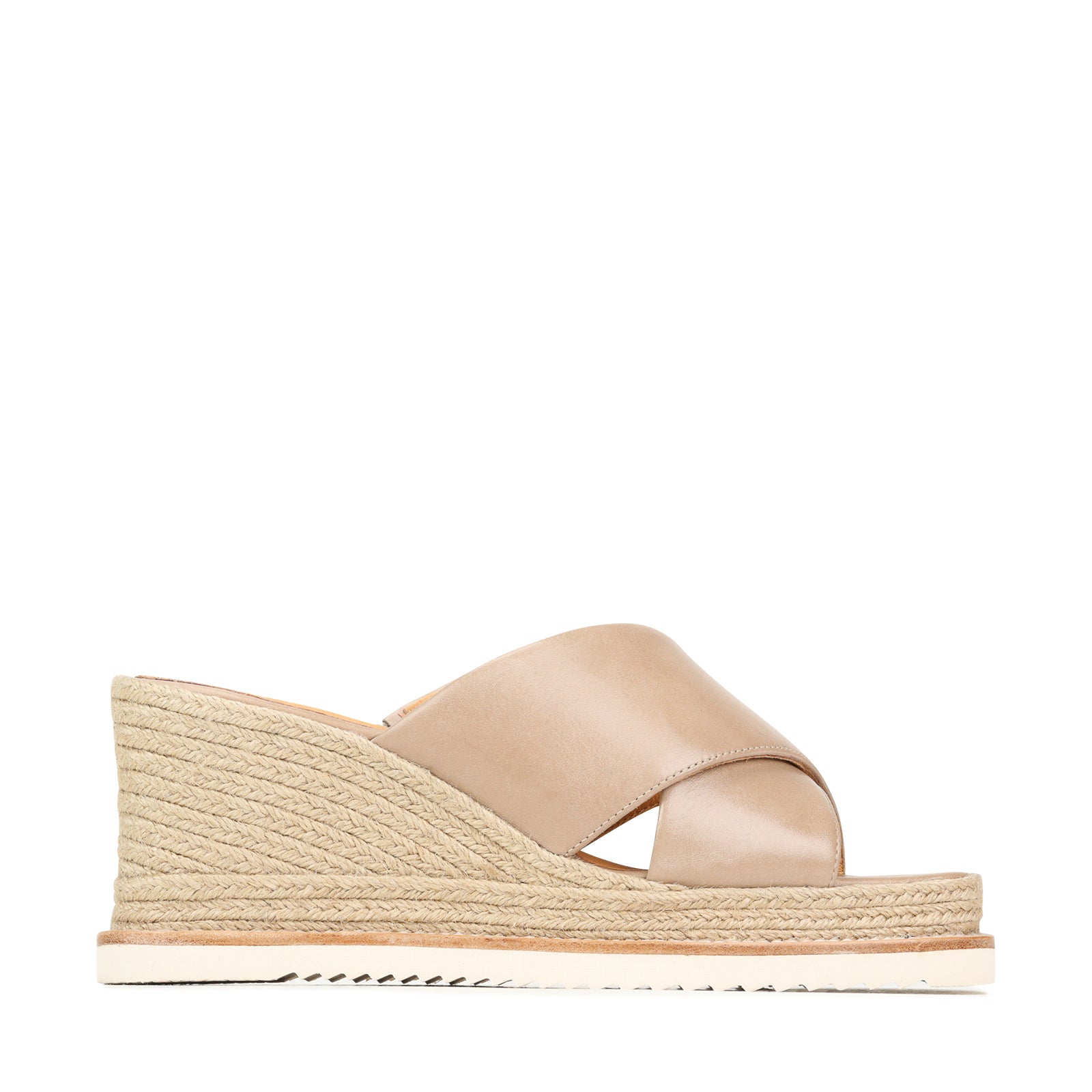 Elevate your summer style with ZELIE Espadrille Wedge Slides. Crafted from premium Cashmere leather, these slides feature cross-over straps for an effortlessly chic look. The wedge sole adds a modern twist, providing a flattering lift with stability. Versatile and sophisticated, perfect for any occasion.